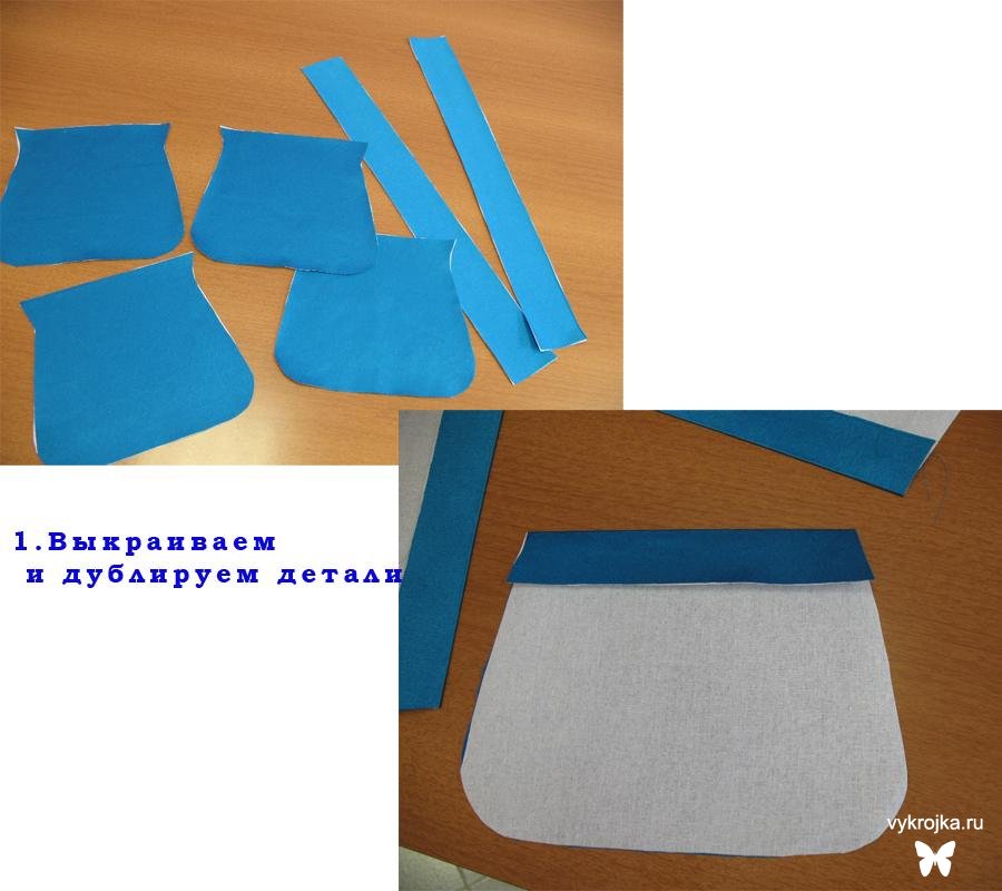 1) основные детали сумки -2 дет (дублируем флизелином)
