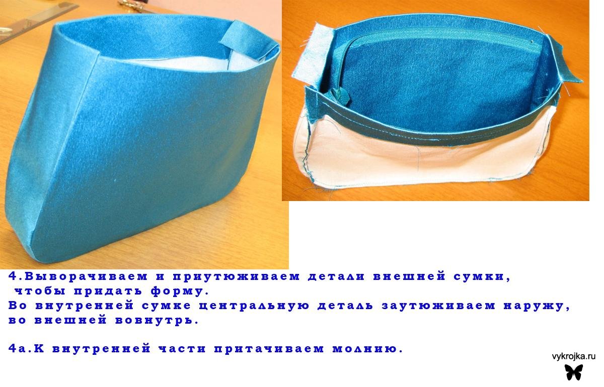 Сшиваем внутреннюю и внешнюю часть сумки, украшаем по желанию.